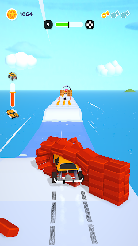 Collect the whole pieces of car on the way in order to form the fastest car you have ever seen. Don’t hit the bothering obstacles so as not to lose some pieces such as wheel, headlight or door. If you could collect the whole pieces without hitting any obstacle, you can turn the car into a monster truck!