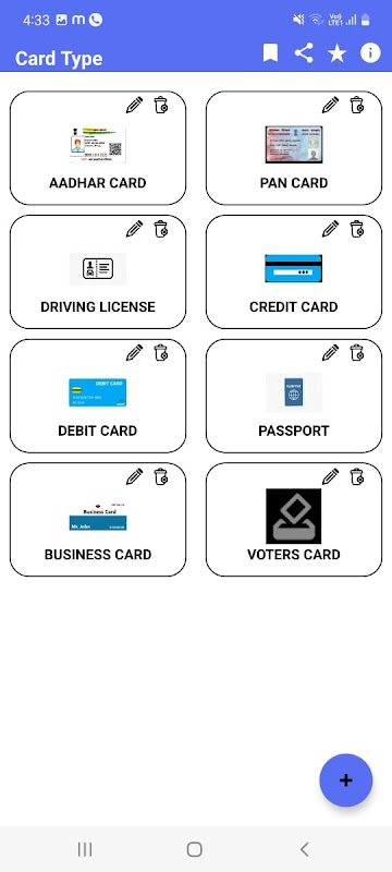 4.アプリは事前定義されたカードを提供し、ユーザーはユーザーの要件に従って追加/削除/更新できます。