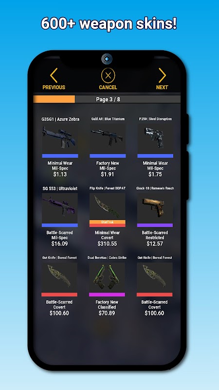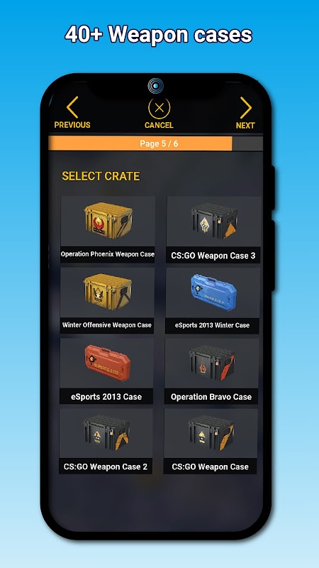 Case Simulator: Weapons は、CS2 および CS:GO のケースを Android デバイスに直接開くスリルをもたらします。Chroma Weapon Case、Revolution Case、Gamma Case などの人気の事件を探索してください。武器が回転するのを見てください。着地したものはあなたのものです!