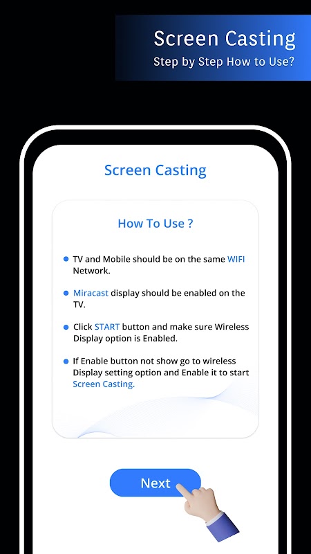 Cast To TV - Miracast for TV allows you to mirror your smartphone on the TV screen in high quality. You will be able to play videos, music, photos, etc to your big TV screen.