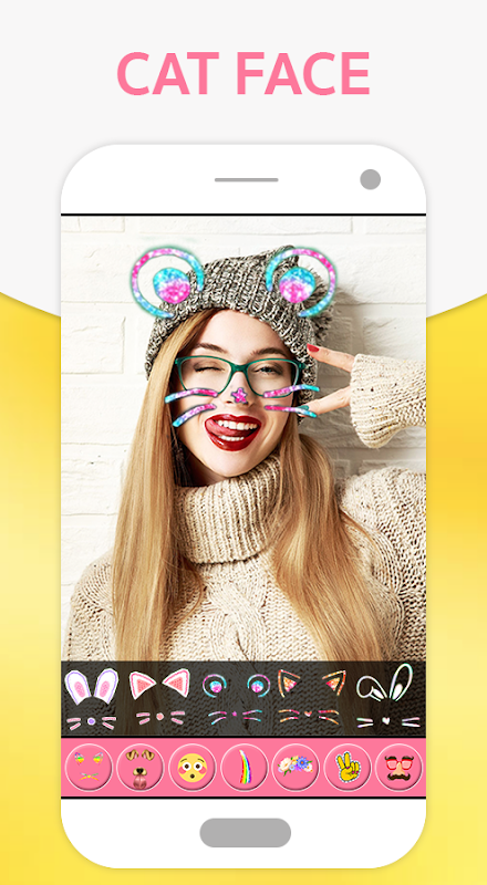 Can't find the right pip camera to beautify photos? Cat Face Camera Maker is a photo editing application that can transform funny face with cute cat sticker photos. cat face editor is best app for face swap and beauty makeup app. Add amazing photo filters & cute cat stickers to your selfies for more like in Facebook and more followers with this app. Also add Photo Filters, Stickers, cool cat smileys, emoji, doggy face, cat face, rabbit face, rainbow, animal eyes, masquerade camera, emoji, tears, snap, animal face editor.