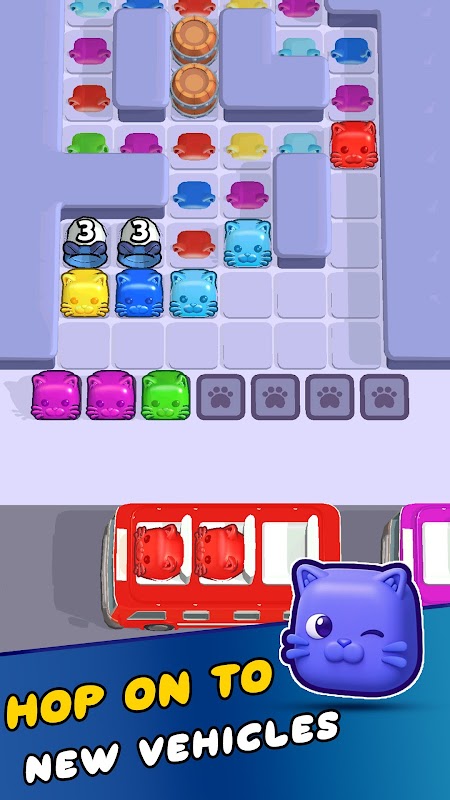 - Let cute kittens find the right color block order when sitting on bus chairs in seat jam 3D mode