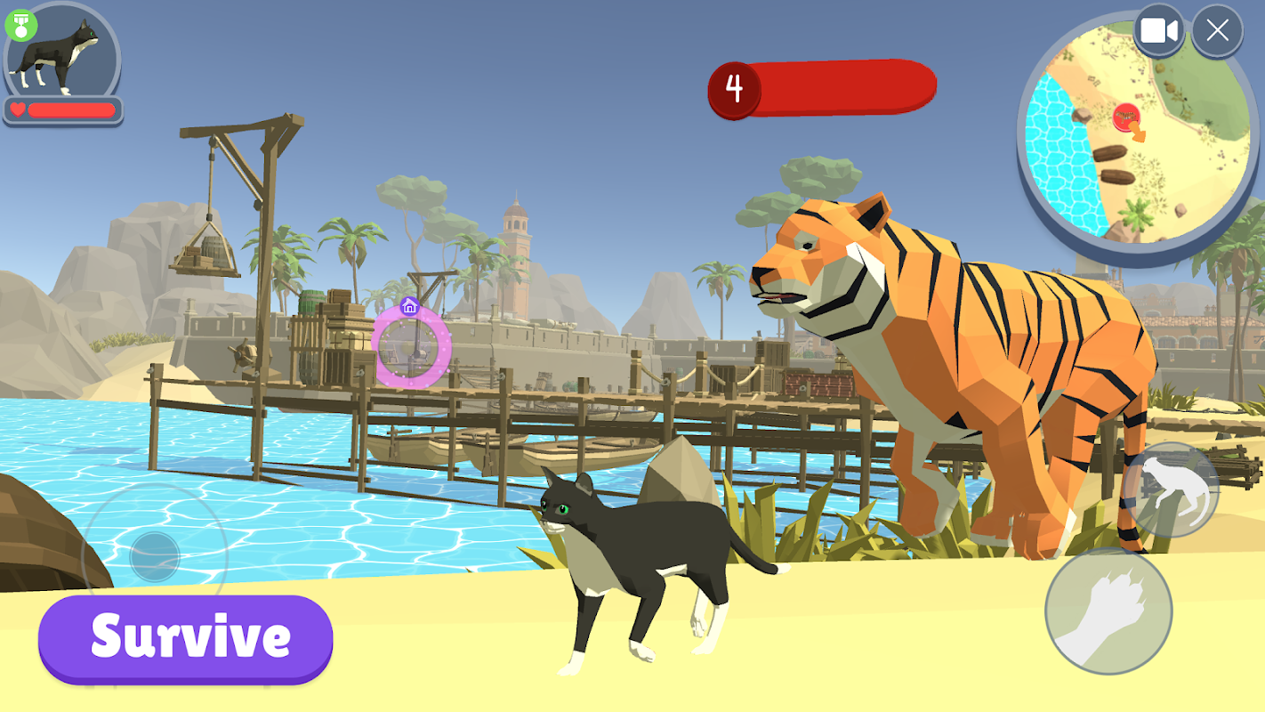 🐾 狩り。あなたは猫なので、たくさんの狩りをしなければなりません。ゲームにはたくさんの動物が登場します。ニワトリ、ガチョウ、オオカミ、ビーバー、キツネ、イノシシなどです。さらに、ライオン、ダチョウ、ワニなど、珍しい動物も登場します。