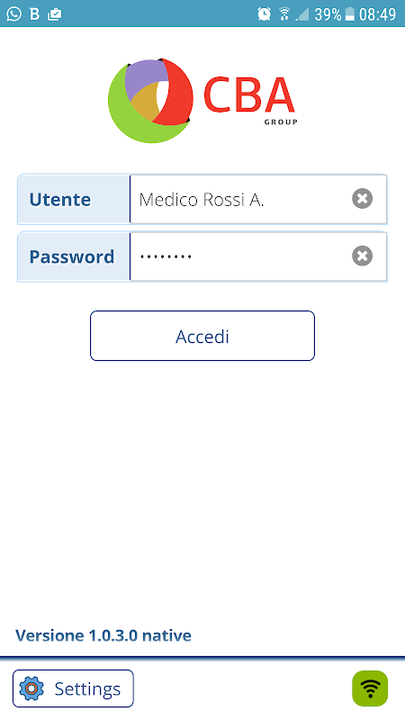 Applicazione di data entry parametri sanitari, rilevazione attività utente e somministrazione terapie.