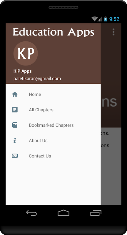 One can navigate to all chapters by clicking on the menu button (3 horizontal lines on top of the screen) or swipe from left of the screen to see the navigation drawer and select appropriate options. There is also an option to bookmark chapters for easy access when you navigate through chapters list and see the content of the specific chapter.