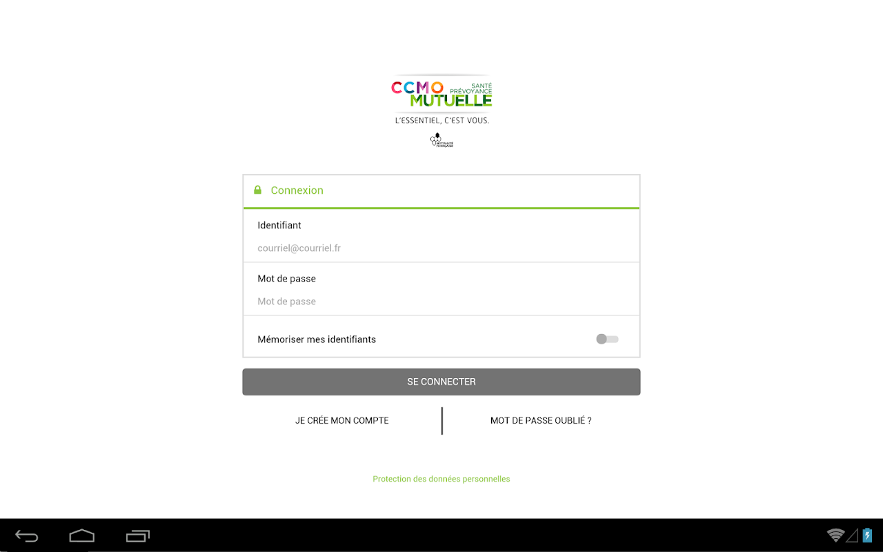 Pour vous connecter à l’application, utilisez les identifiants de votre espace sécurisé du site internet www.ccmo.fr.