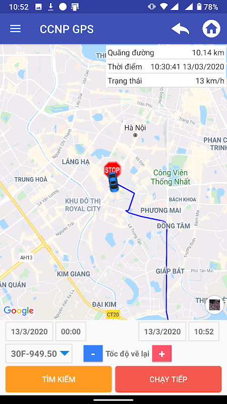 Ứng dụng giám sát hành trình xe CCNP GPS