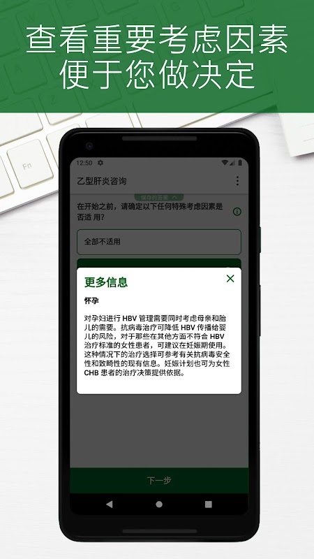 该工具会向您询问一系列问题以定义特定 HBV 病例,然后提供针对性的个体化建议。