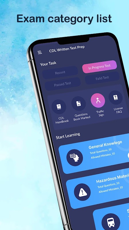 このCDL模擬試験準備アプリケーションに含まれている本、交通標識、およびクイズを介して、商用運転免許証試験を研究し、準備します。
