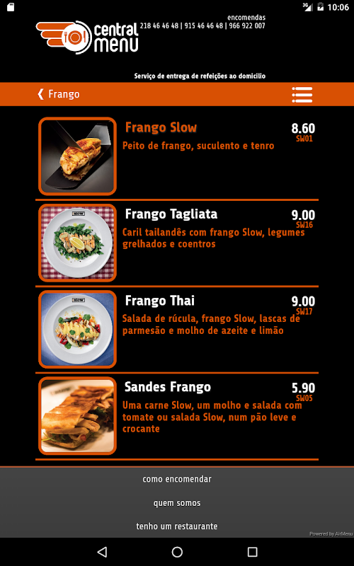 中央のメニューはあなたに最高のレストランの最高の食事をもたらします。お食事レストランや料理の種類を選択して、必要な飲み物やデザートを使用してアプリケーションを完了します。あなたは補完的な製品が必要な場合も彼を取ります。さて、昼食を準備したり、夕食は、クリックの距離にあります。よく食べますね!
