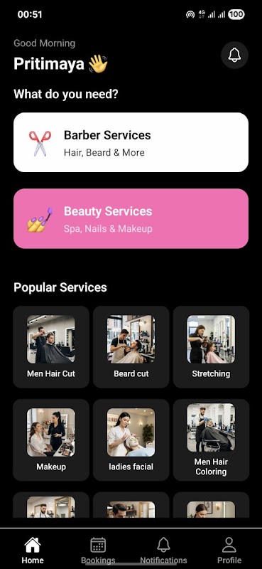近くのサロンを検索し、サービスを予約し、理容師とチャットし、OTPで始めましょう