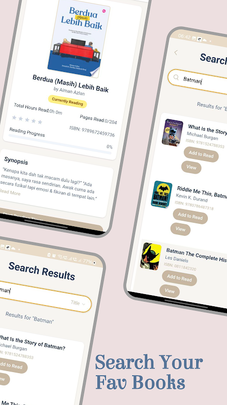 • ライブラリの管理: 読んでいる本、読む予定の本、または読み終わった本を簡単に追加できます。コレクションをステータスごとに整理し、読書履歴を追跡します。