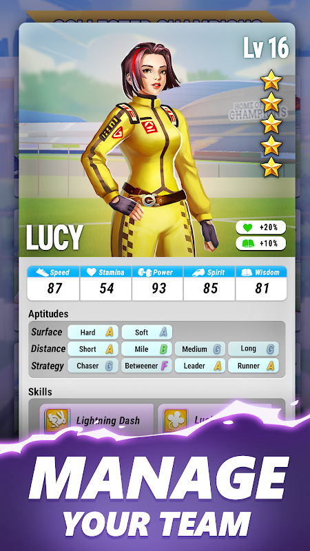 チャンピオンを選択して訓練し、一連のレースに参加させて決勝に勝ちましょう。