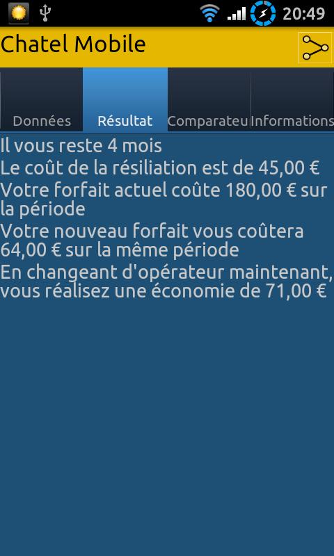 Chatelのモバイルはまた、あなたの消費量に基づいて計画を比較することができます。