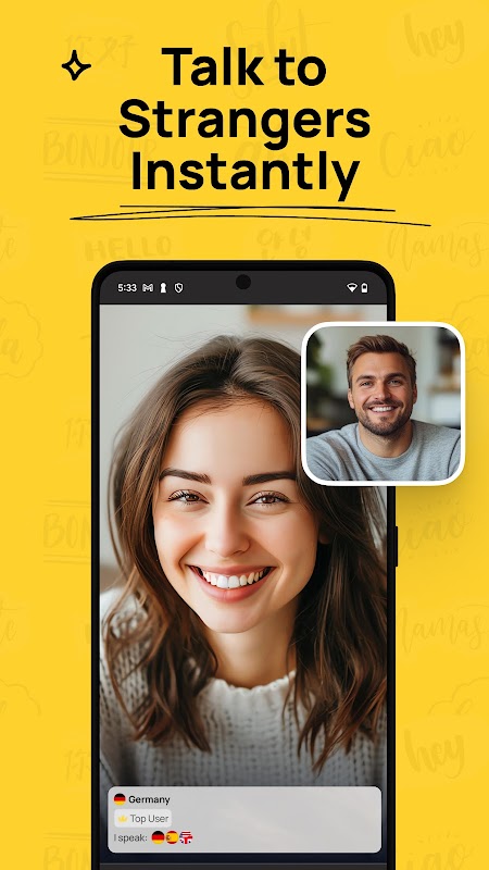 • 見知らぬ人とのランダムなビデオチャットで新しい人に会い、見知らぬ人と話して世界中から友達を作りましょう。 🌍👋