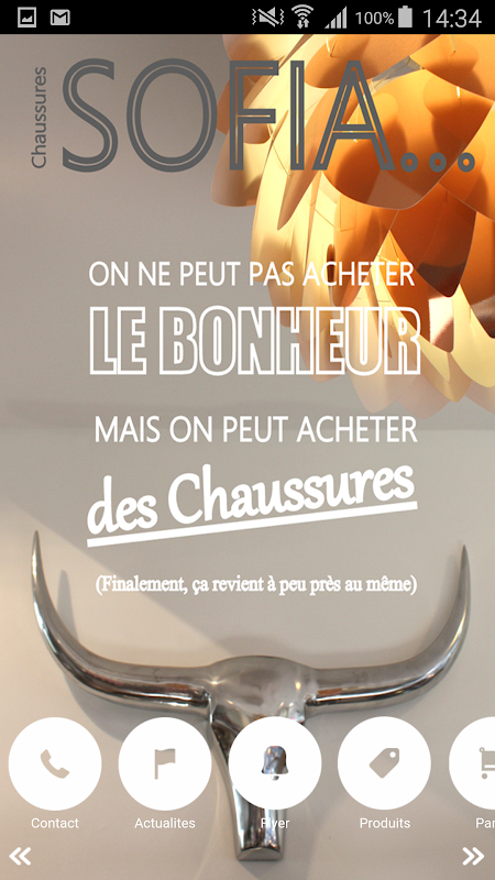 L'application "Chaussures Sofia" vous offre la possibilité de consulter toutes les infos utiles de la boutique (Tarifs, produits, avis…) mais aussi de recevoir leurs dernières News ou Flyers sous forme de notifications Push.