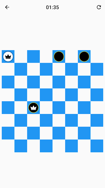 チェッカーは、ゲームボードの反対側にいる2人の対戦相手によってプレイされます。 1人のプレイヤーが暗い部分(黒)を持っています。 もう1つはライトピース(白)です。 プレイヤーは交互にターンします。 プレイヤーは対戦相手の駒を動かすことはできません。 移動とは、ピースを隣接する空いているマスに斜めに移動することです。 隣接するマス目に対戦相手の駒があり、そのすぐ先のマスが空いている場合、そのマスを飛び越えてキャプチャ(およびゲームから削除)することができます。