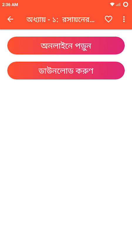 নবম ও দশম শ্রেণীর শিক্ষার্থীদের জন্য, অধ্যায় ভিত্তিক রসায়ন বই। অ্যাপের ভেতর বইটি পড়া যাবে এবং ভাল লাগলে ডাউনলোড করে সংরক্ষণ করাও যাবে।