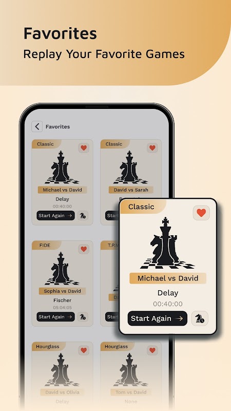 • 優れたチェスクロックのテーマとタイマーのデザインからお選びいただけます。