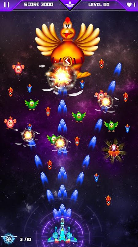 ゲームが先に進めば進むほど、敵の攻撃も激しくなります。激しい攻撃をかわしてさらに先へ進めると、スペースシップをアップグレードして無敵になれる権利を獲得できます。