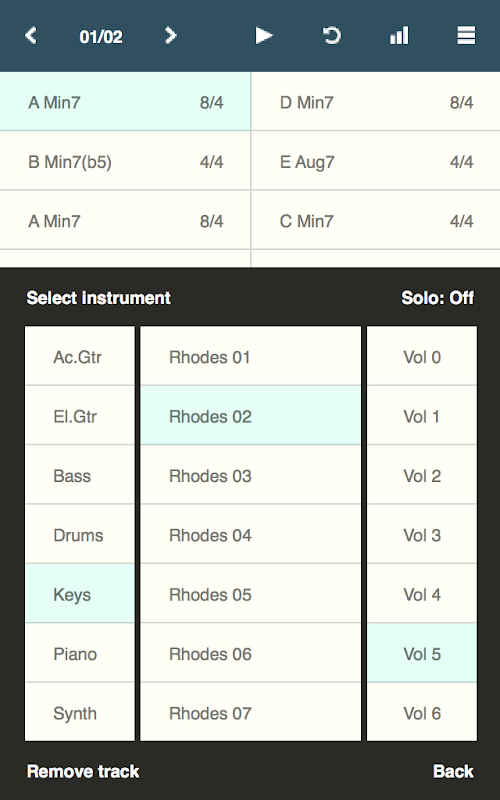 Chordbotは、スマートフォンやタブレット上で簡単に複雑なコード進行を作成して再生することができる、作詞作曲ツール/電子バックアップバンドです。コードをいくつか追加し、コンピング スタイルを選択し、再生ボタンを押してください。