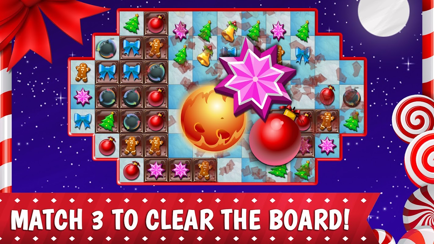 心地よいクリスマスゲームをお楽しみください!3 つマッチしてキャンディーを砕き、ホリデーの魔法を感じてください。