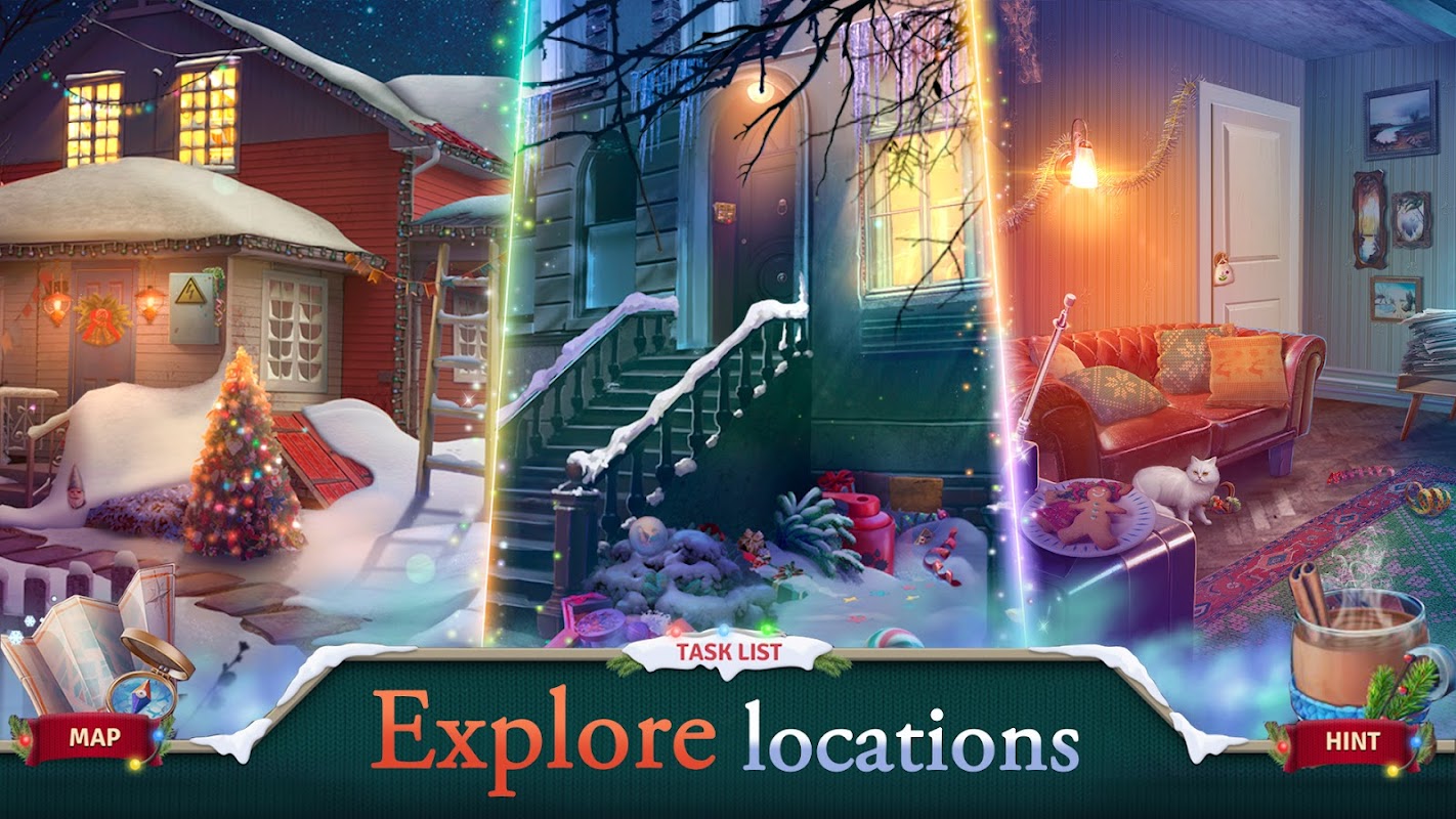 町の住民がクリスマスの精神を取り戻すのを手伝ってください!魅力的な隠しオブジェクトシーンをクリアし、このクリスマスパズルアドベンチャーで予想外の展開にワクワクしてください。
