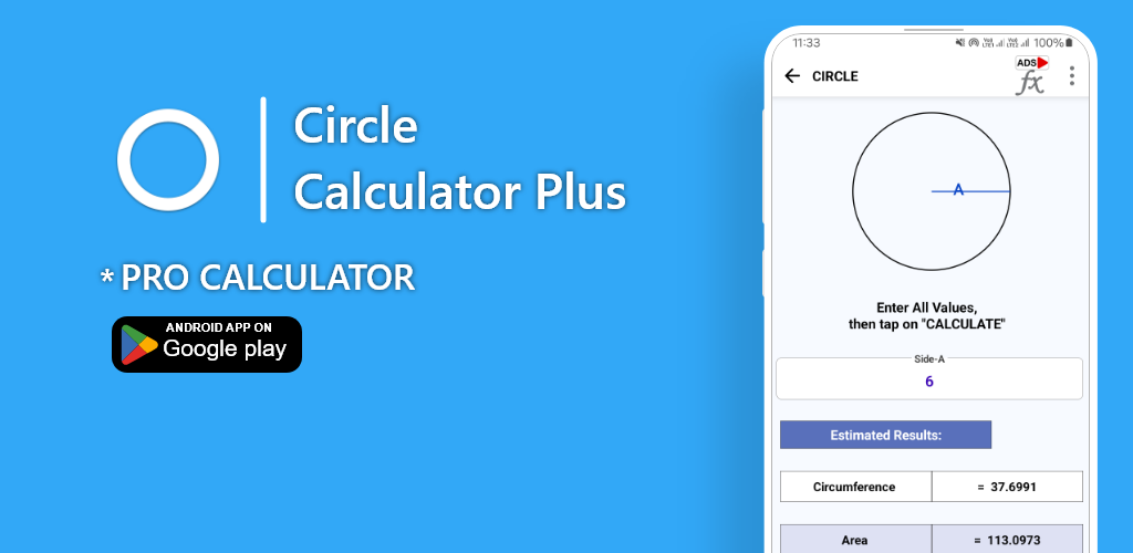 この円計算機は、有効な既知の値に基づいて円の半径、直径、円周、または面積を計算するのに役立つ必須のアプリです。