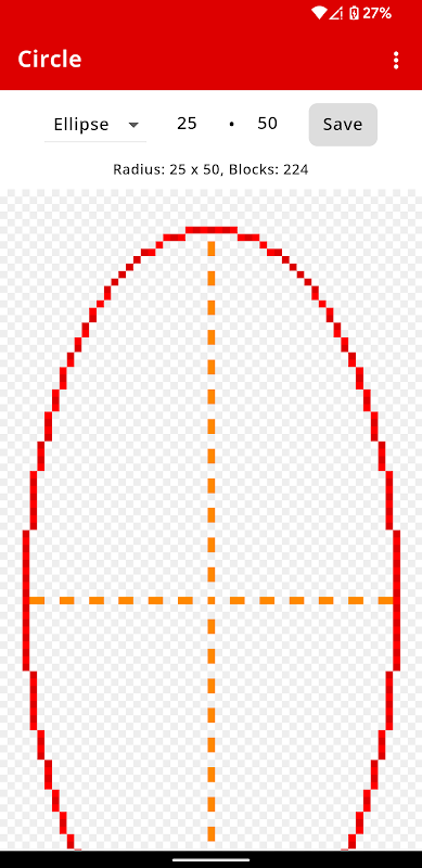 お気に入りのゲームにブロックを配置するためのガイドラインとして、ピクセル化された円と楕円を生成します。