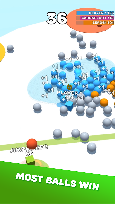 Simple one-touch gameplay and strategy on an io game in a colorful 3D environment.