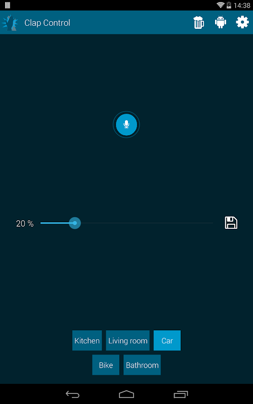 Clap Control makes it possible to control your music through simply clapping the hands together. You can adjust the sensitivity of the phones micro and save the value as profile. In addition you can set different actions depending on the amount of claps you did, e.g. pausing the music.