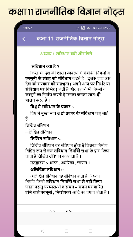 このアプリケーションには、クラス11の政治学rajniti vigyan NCERTブックノートがヒンディー語で含まれており、簡単な説明がポイントごとに記載されています。このアプリケーションは、クラス11の生徒向けに設計されており、各章にはヒンディー語で詳細なメモが含まれています。このアプリケーションは、クラス11のrajnitivigyanヒンディー語中学生向けのアプリケーションである必要があると思います。