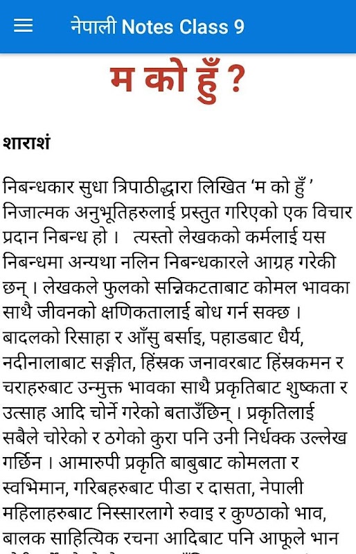 このアプリケーションには、さまざまな章の完全なメモと、クラス9ネパールの主題の質問の解決策のコレクションが含まれています。
