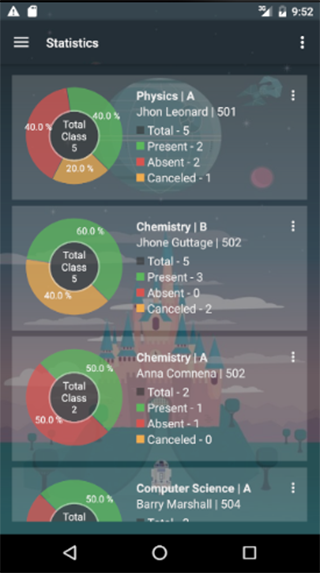 ✓(、現在の不在およびパーセンテージをキャンセル)クラスの統計情報を取得します。