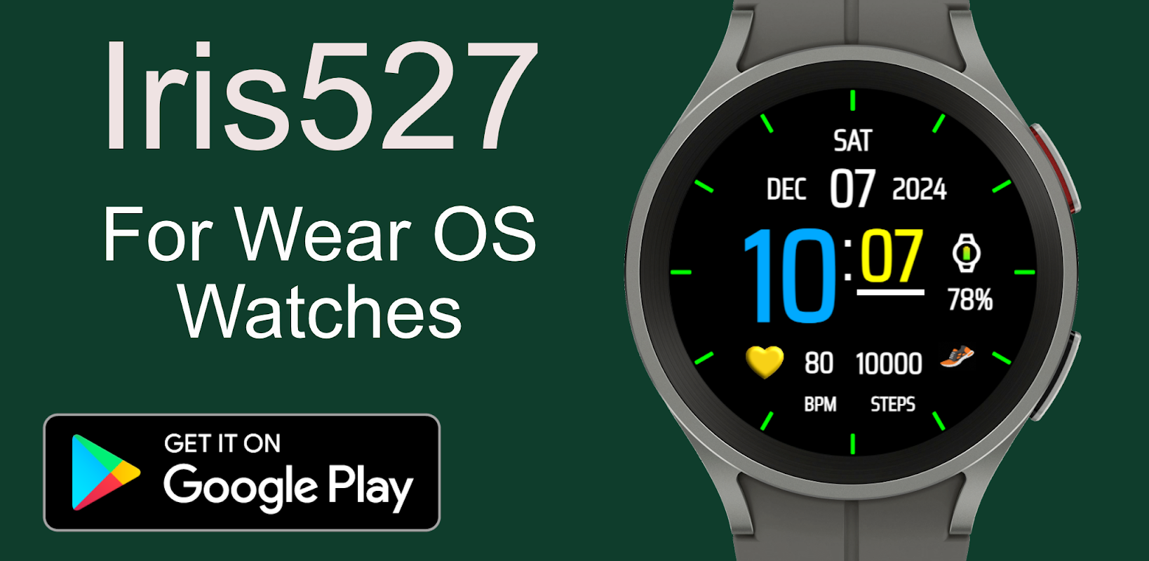 • Wear OS のみ: Iris527 ウォッチフェイスは、Wear OS デバイス専用に設計されています。