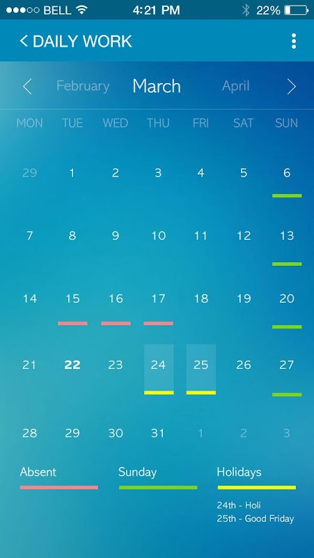 学校や休日カレンダー。