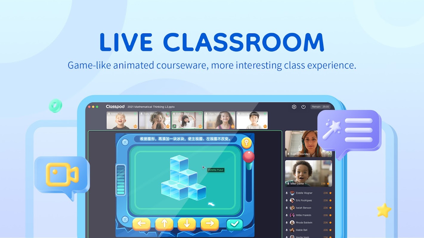 クラスポッドのライブ教室では、ライブチャットの一般的な機能に加えて、インタラクティブなゲームのようなコースウェアを提供しています。教師の承認を受けた後、コースウェアを操作できます。
