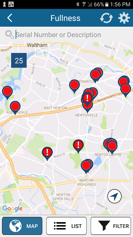 •リアルタイムのステータスを示すBigbellyスマート廃棄物ステーションの地図表示と一覧表示