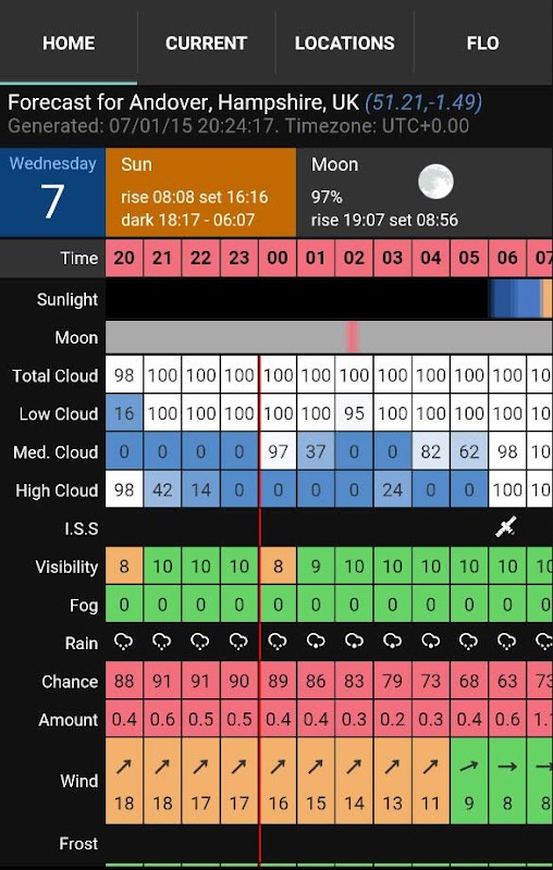あなたはISS渡すオーバー情報に気づきましたか?時間は正確にあなたの場所のために計算し、それが観察するかつてないほど容易になりましたので、雲の予測と並んで表示されます。それは私たちのお気に入りの機能です:-)
