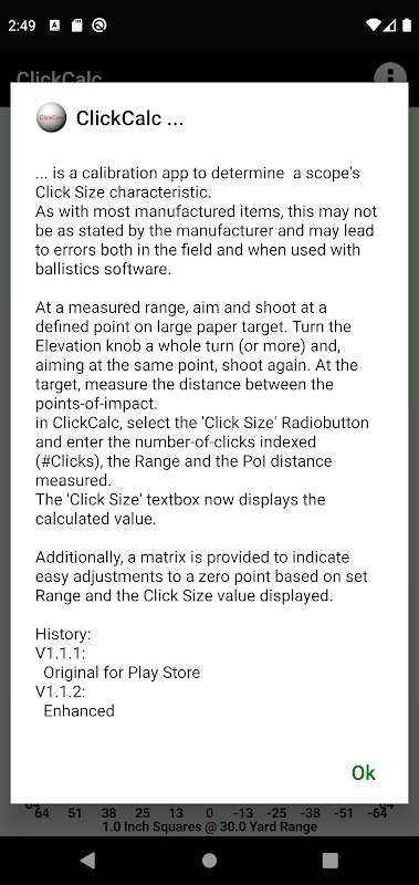 ClickCalcは、スコープの「クリック数/ MoA」特性を決定するためのアプリです。