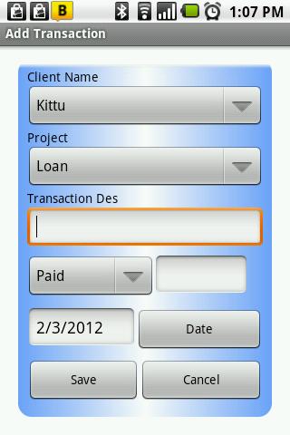 3 ) Add Transaction of a particular client or project .