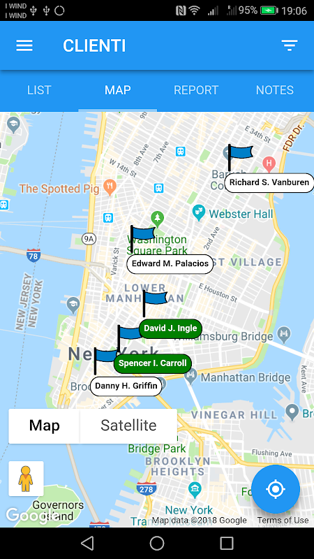 新しい顧客の追加は簡単で簡単です。必要なフィールドのみを挿入します(名前だけでも)。デフォルトのフィールドでは不十分な場合は、カスタムフィールドを追加できます。外出中に顧客を追加することもでき、GPSが自動的に位置を設定します。