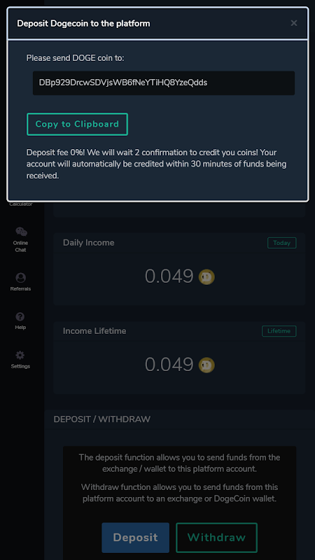 CloBitプラットフォームでは、Dogecoin暗号通貨クラウドマイニングで収益を得ることができます。