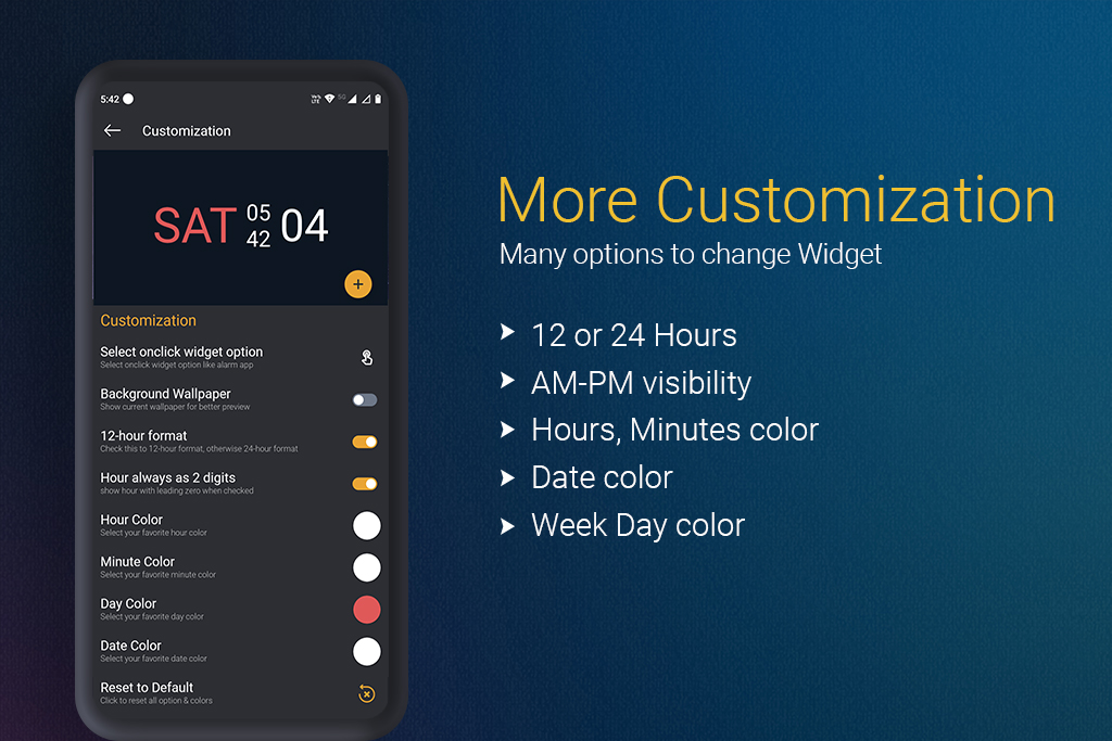 Complete Customization: Go pro! Our premium version offers endless customization. Change colors for the hours, minutes, weekdays, and months. Select from 12-hour or 24-hour formats to match your preference.