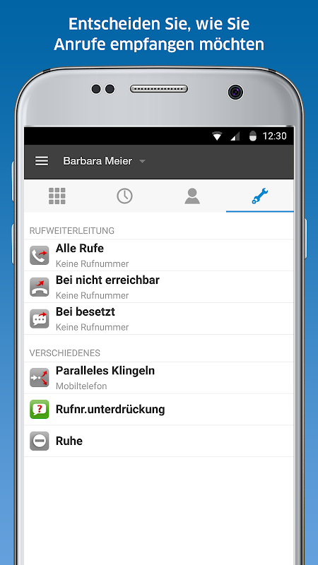 • Umleitung ankommender Rufe auf Sprachbox oder SMS