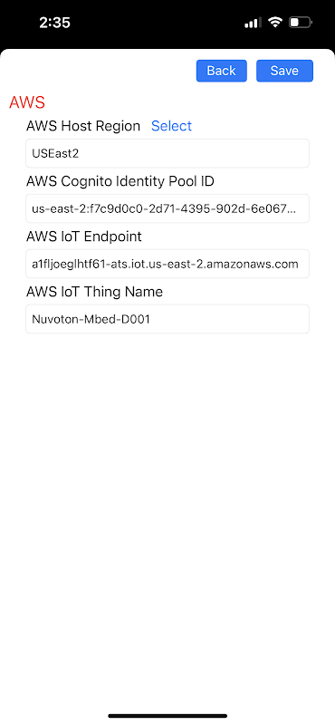 Nuvoton は、AWS サーバーに接続するように設計された cloudAWS アプリを提供します