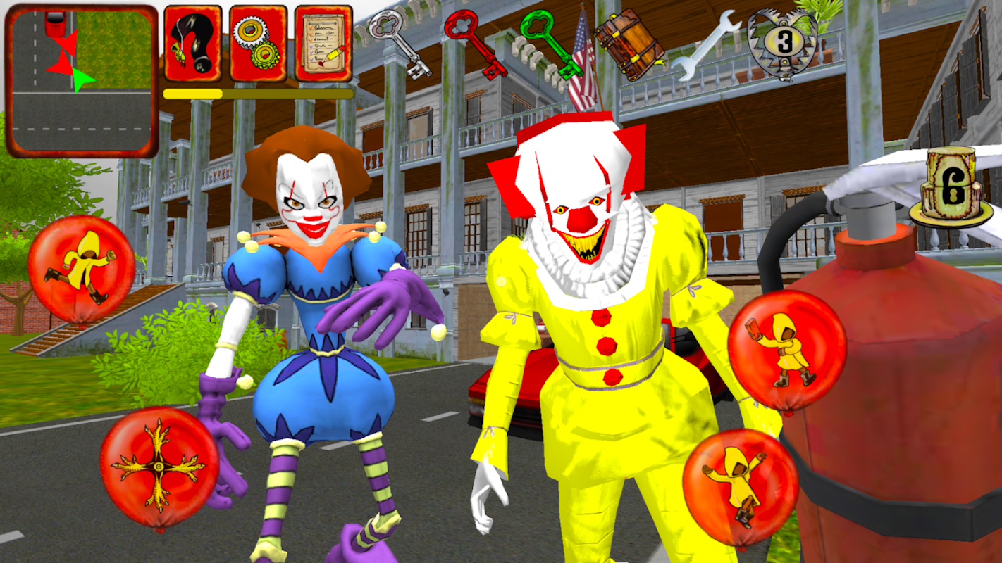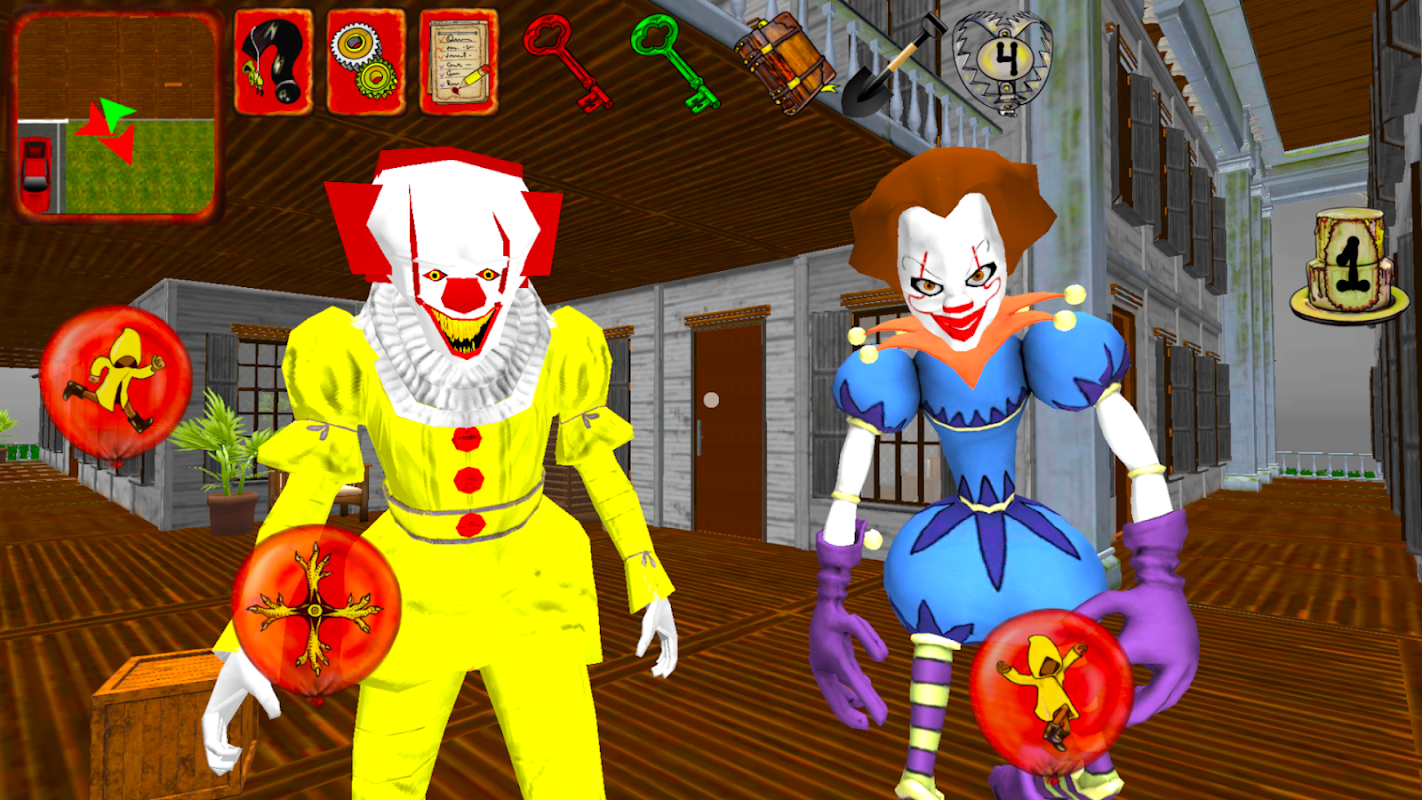 Very often you noticed that these clowns behave strangely. They often said hello, watched you and laughed. You decided not to tell your parents about it and find out its secrets alone. One fine day, you decided to enter his huge house and find out what secret your new neighbors are hiding. As soon as he saw you, they became very angry and began to run after you. You managed to escape to your home. You told your parents and your granny about it, but they did not believe it. They seemed friendly to them and they did not believe your words.