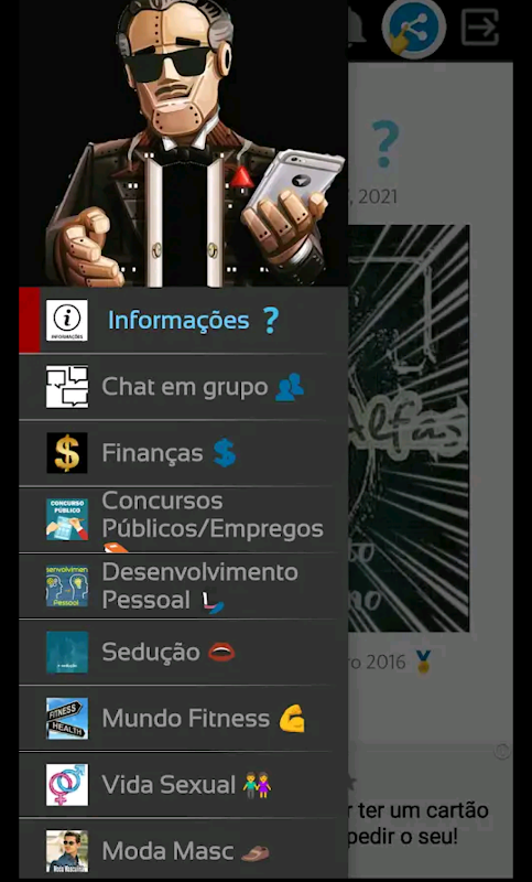 Aplicativo que abrange temas sobre sedução e desenvolvimento pessoal masculino,mundo fitness,finanças,cursos e estudos,moda masculina e etc...
