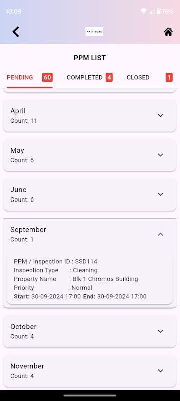 * Maintegra アプリ内の予防保守 (PPM) モジュールは、機器、機械、またはシステムの予防保守活動を容易にします。