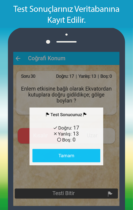 Bu uygulama KPSS, TYT, AYT, LGS gibi sınavlarına ve okullarda okutulan Coğrafya derslerine yardımcı olmak amacıyla hazırlanmıştır.